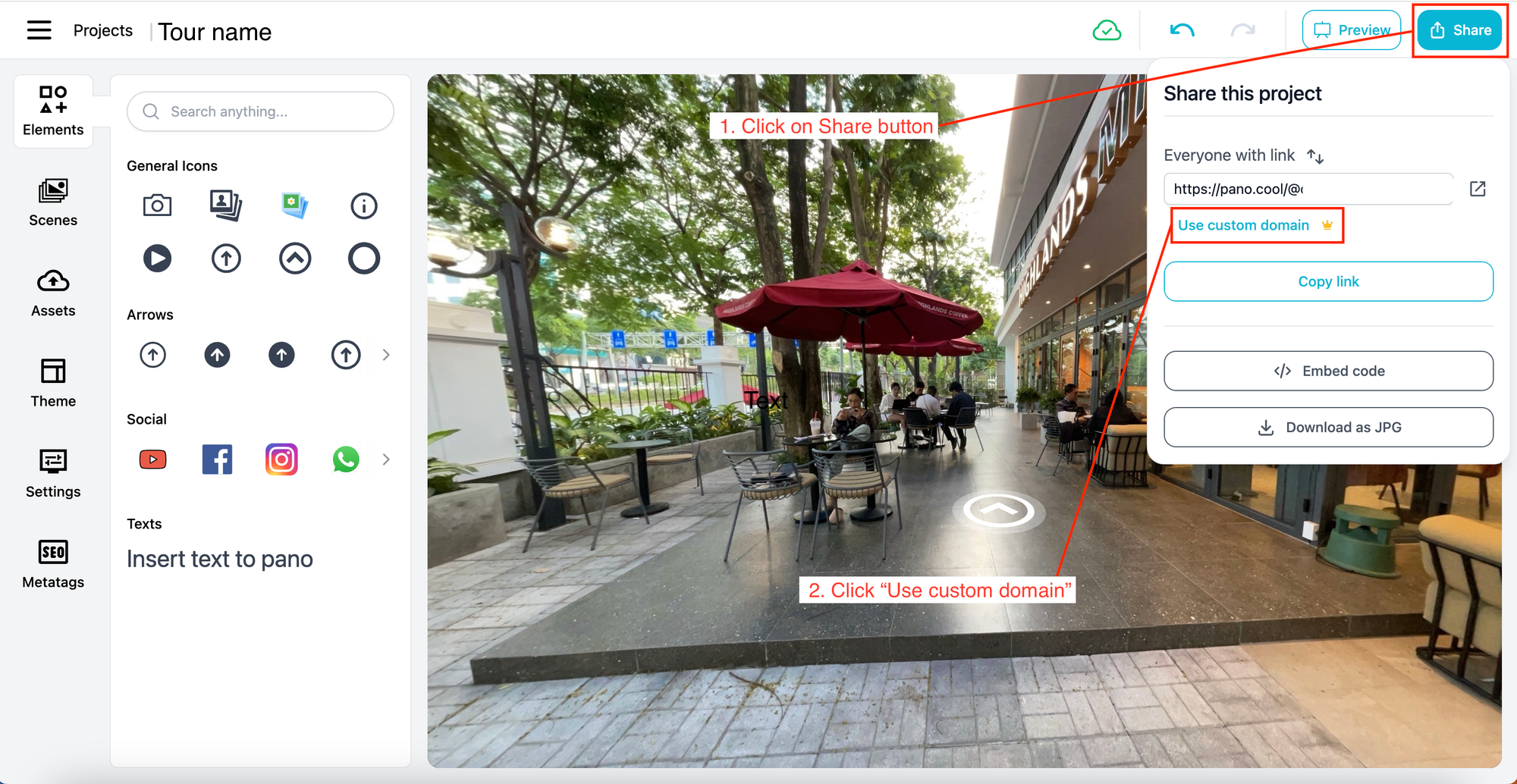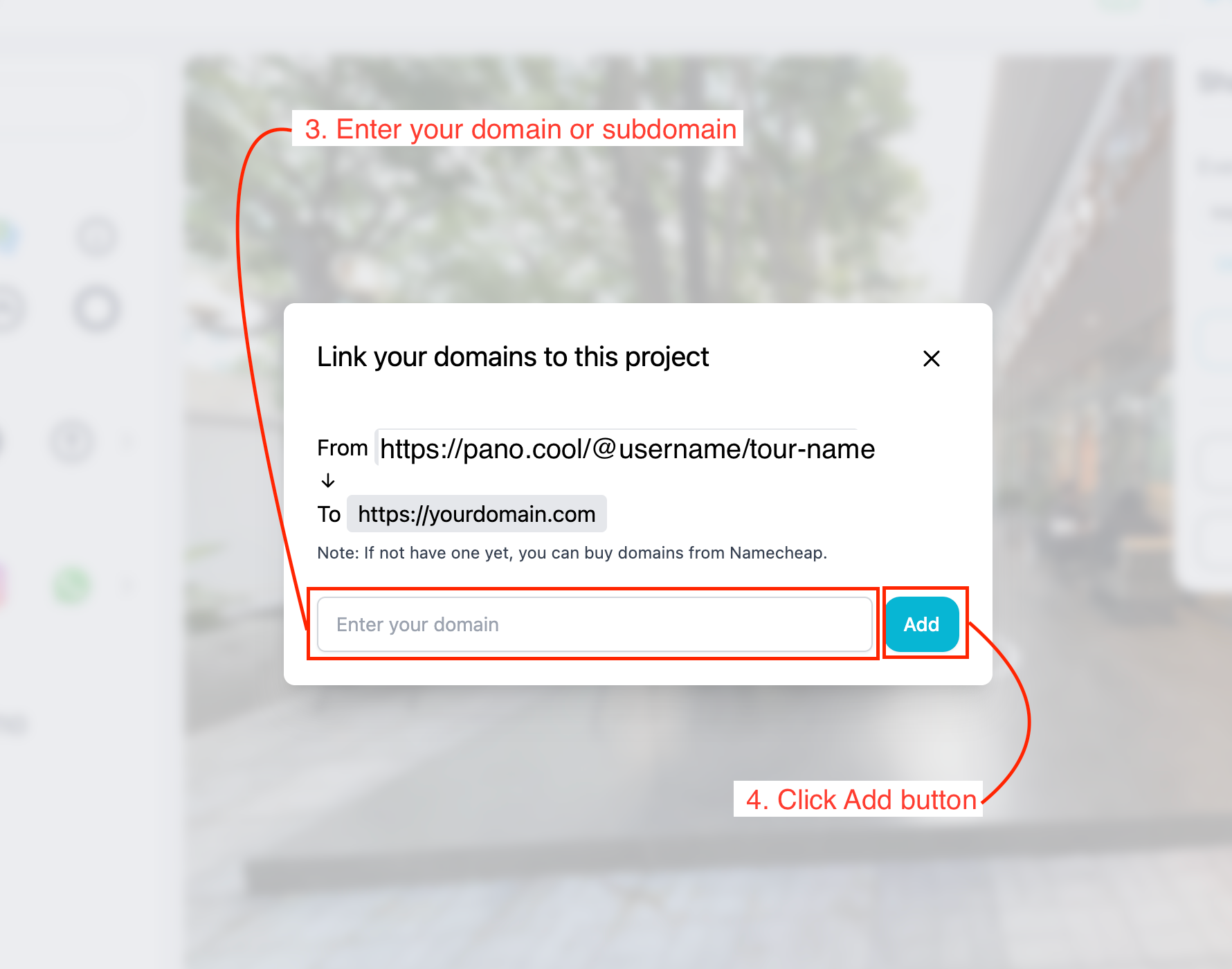 Using a custom domain with PanoCool enhances your brand, improves user experience, and boosts search visibility. It’s a smart investment for creating impressive virtual tours. This is a quick instructions of how to add your custom domain to your virtual tour on PanoCool.
