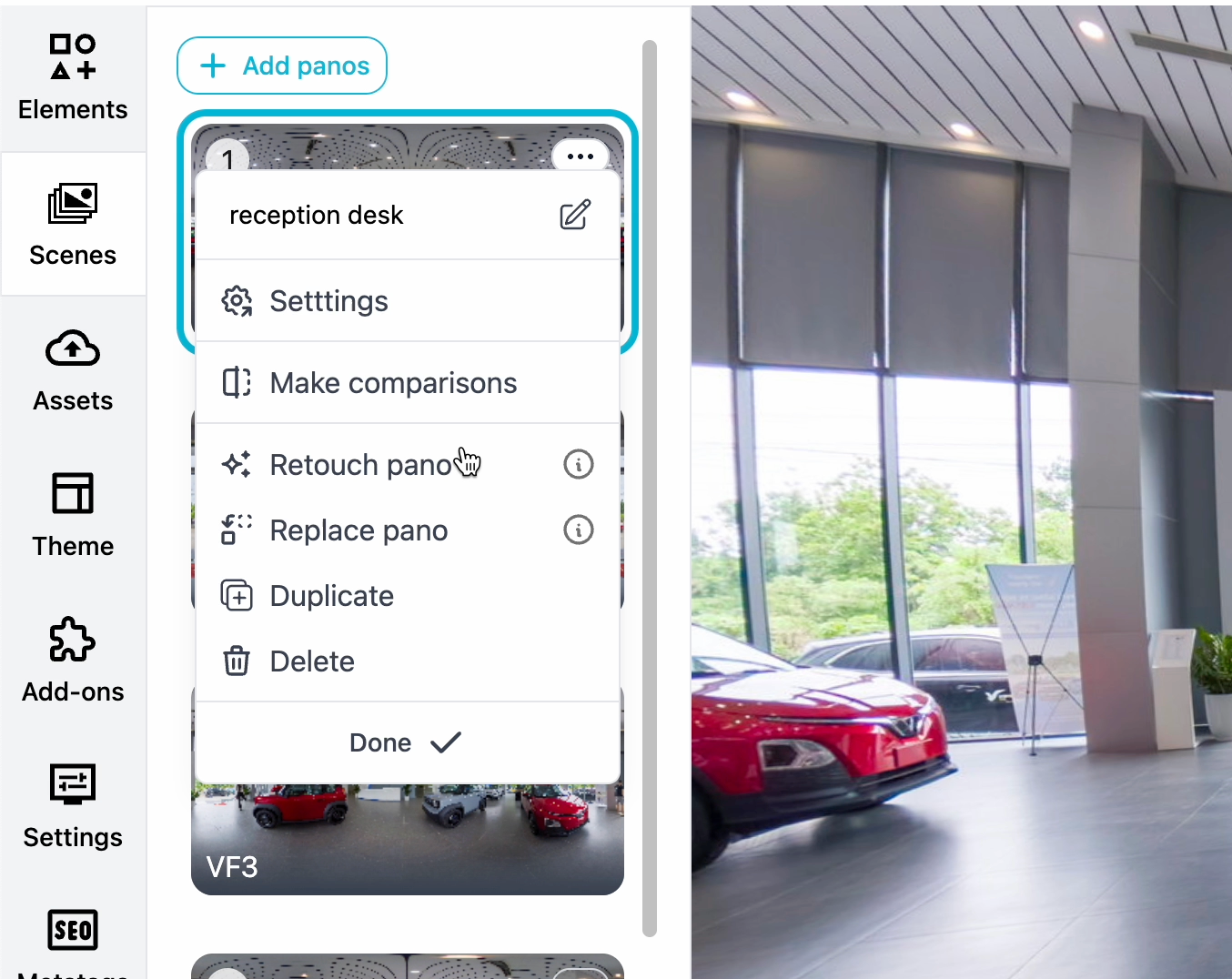 A common challenge in virtual tour production is discovering a needed correction after a scene has already been published. Typically, this would require an offline edit and a manual re-upload, which can disrupt hotspot placements and scene settings.