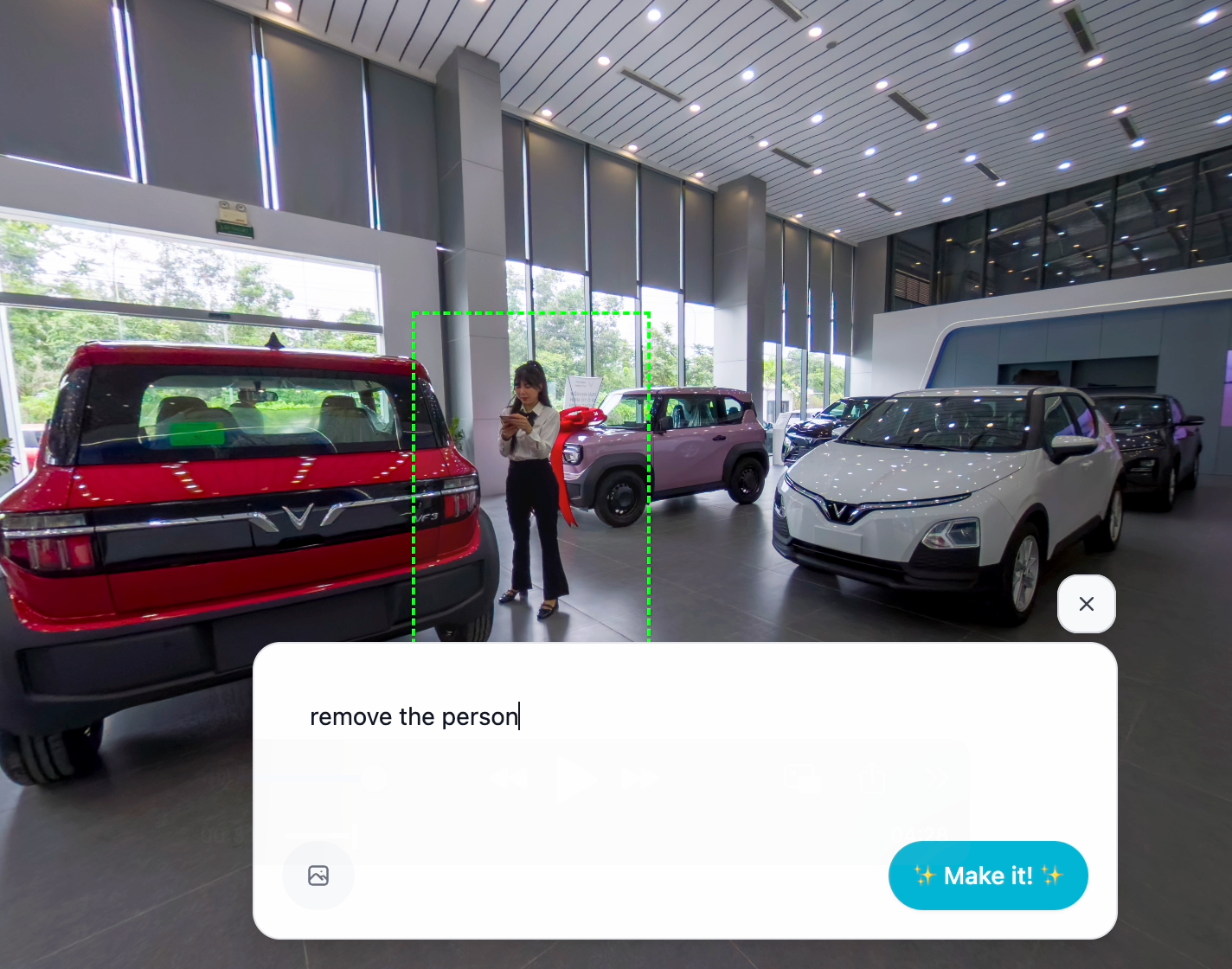 - In the AI prompt field, enter a simple instruction like: "Remove this person" or "Clean this area."